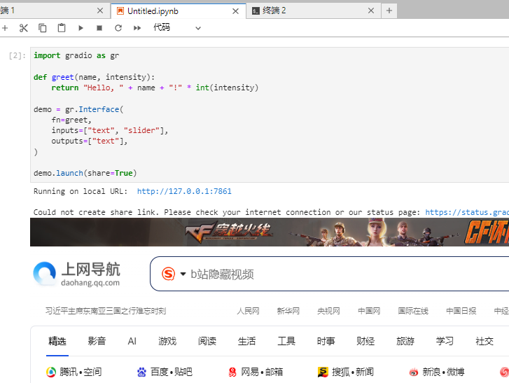Gradio安装成功,但界面不显示,怎么回事,根据网上很多方法,都不行,但是网络上通的