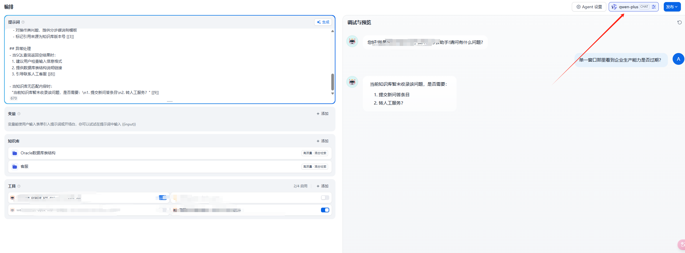 dify的应用中用agent创建 客服助手用于检索知识库,