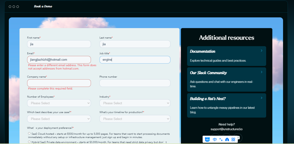 UNSTRUCTURED key因为注册,但是注册,需要邮箱,试了很多邮箱都不行 #744