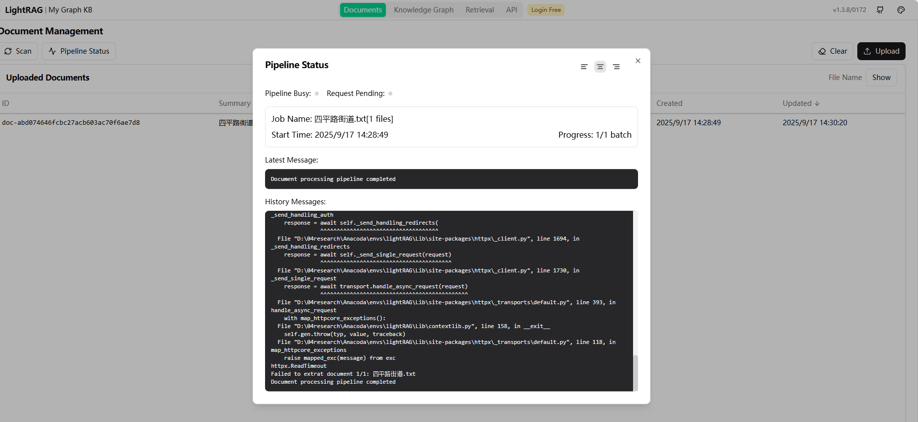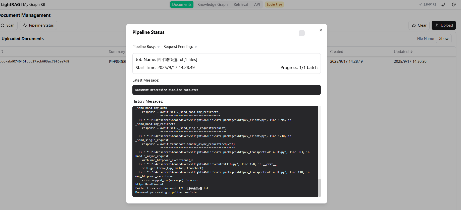 File "d:\04research\jupyter\15-minute-city\graphrag\lightrag\lightrag\lightrag.py", line 1003, in process_document