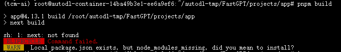 (tcm-ai) root@autodl-container-14ba49b3e1-ee6a9ef6:~/autodl-tmp/FastGPT/projects/app# pnpm build