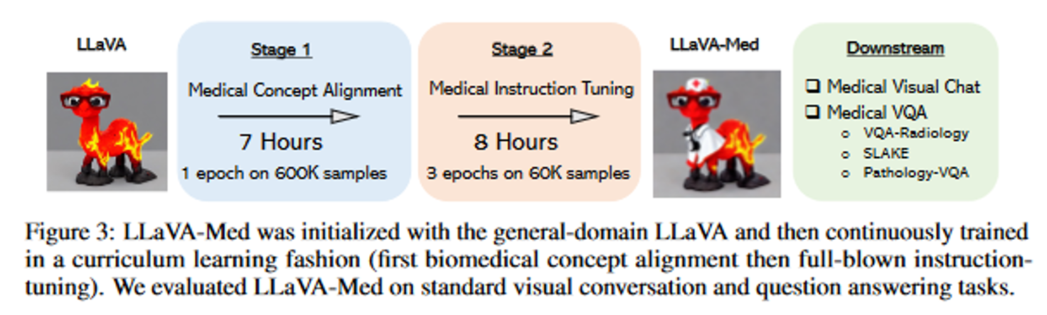 Key Idea:从 PubMed Central 提取生物医学figure-caption数据集,然后使用 GPT-4 通过caption来self-instruct open-ended instruction-following data,然后使用a novel curriculum learning method来微调通用领域视觉语言模型。