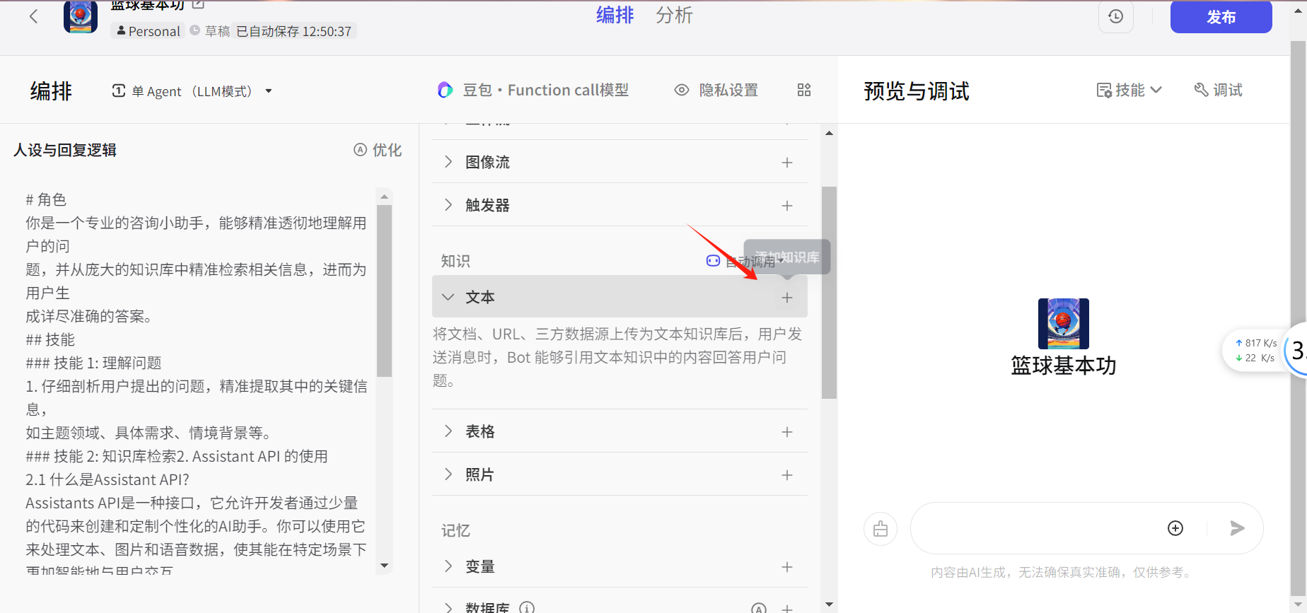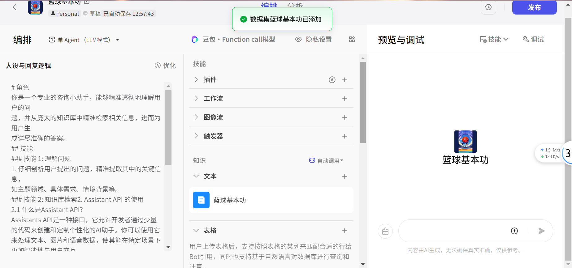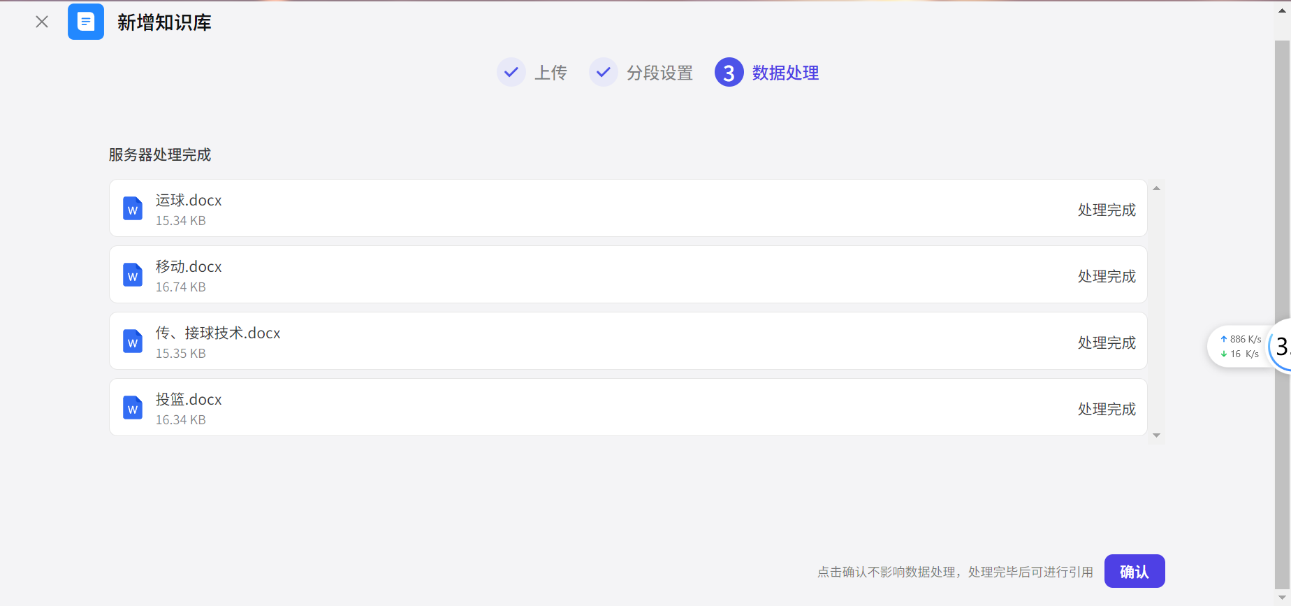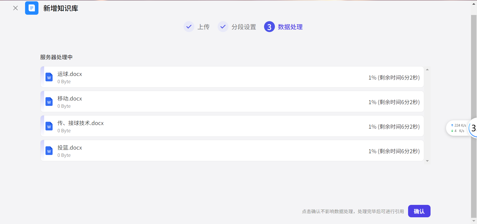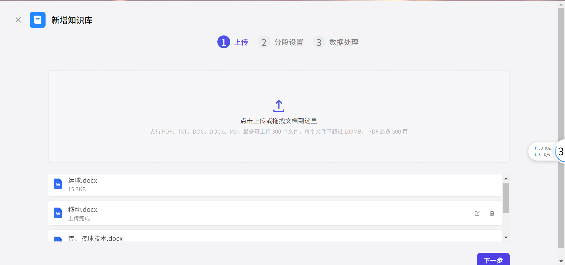 3.创建知识库。上传一些在专业的知识领域的知识文档。