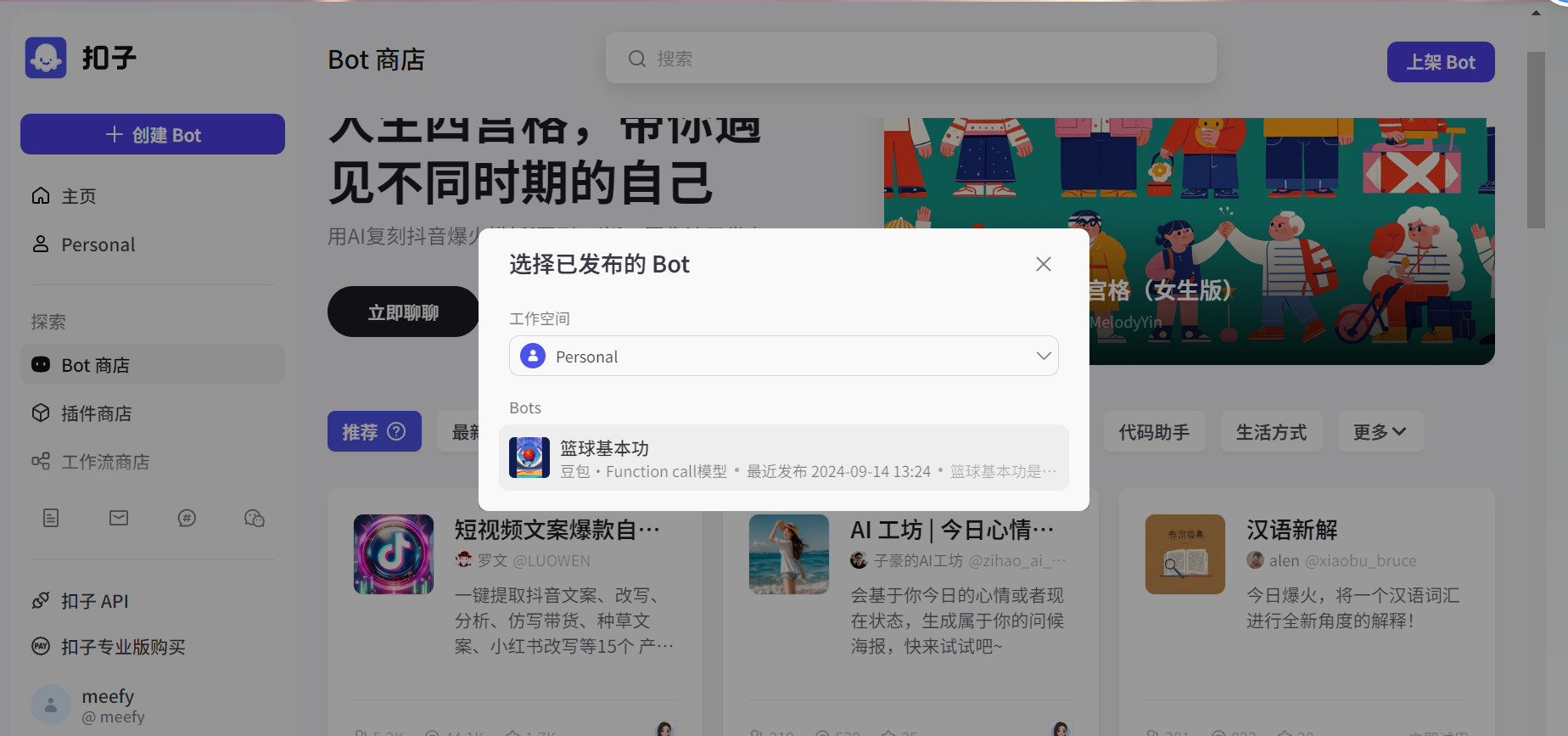 10.Bot连接 https://www.coze.cn/s/ikYGpud8/